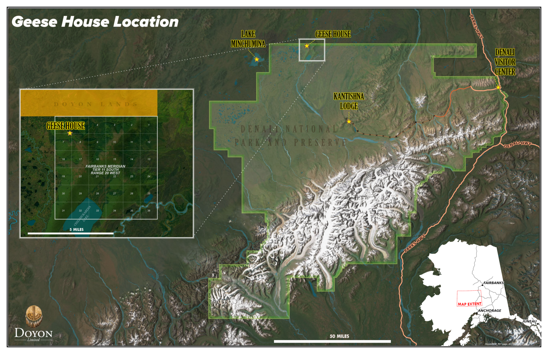 ANCSA authorized the selection of the lands at the Geese House site, and in 1978, Doyon selected those lands as an important historical site, but the lands were never conveyed to Doyon. Although the lands were not originally part of Denali National Park and Preserve, the lands were added to the Park by ANILCA in late 1980, where they now comprise part of the northwestern corner of the Park, immediately adjacent to other lands conveyed to Doyon under ANCSA in July 2002.